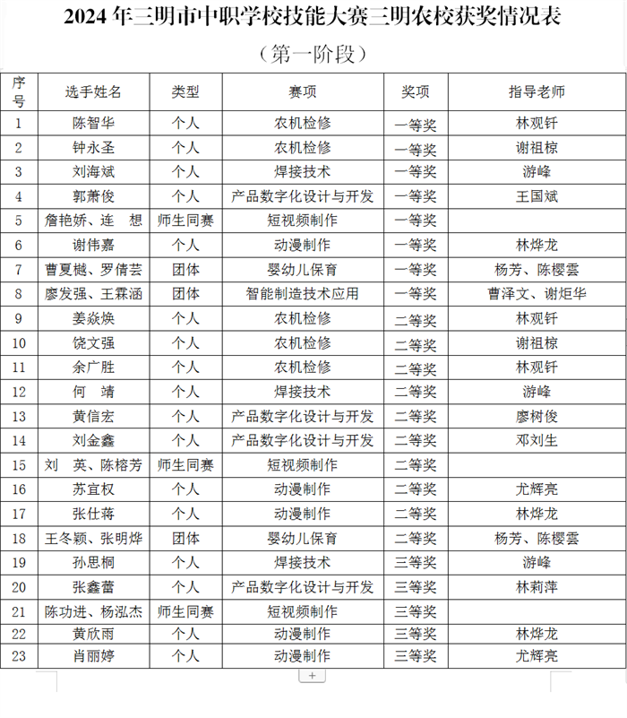 博观而约取,厚积而薄发。在11月11-12日举办的2024年三明市中等职业学校技能大赛农机检修、焊接技术、产品数字化设计与开发、短视频制作、动漫制作、婴幼儿保育...…