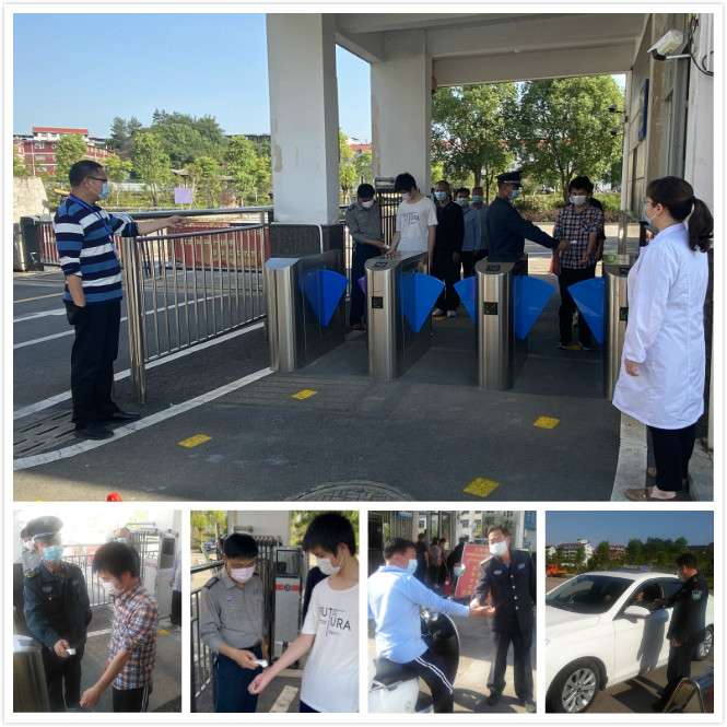 演练有条不紊进行,步行入校分两列排队,人与人之间相隔一米(按地标站位),检测体温正常才可刷卡通过闸机。骑摩托车入校和开汽车入校,检测体温正常方可入校。