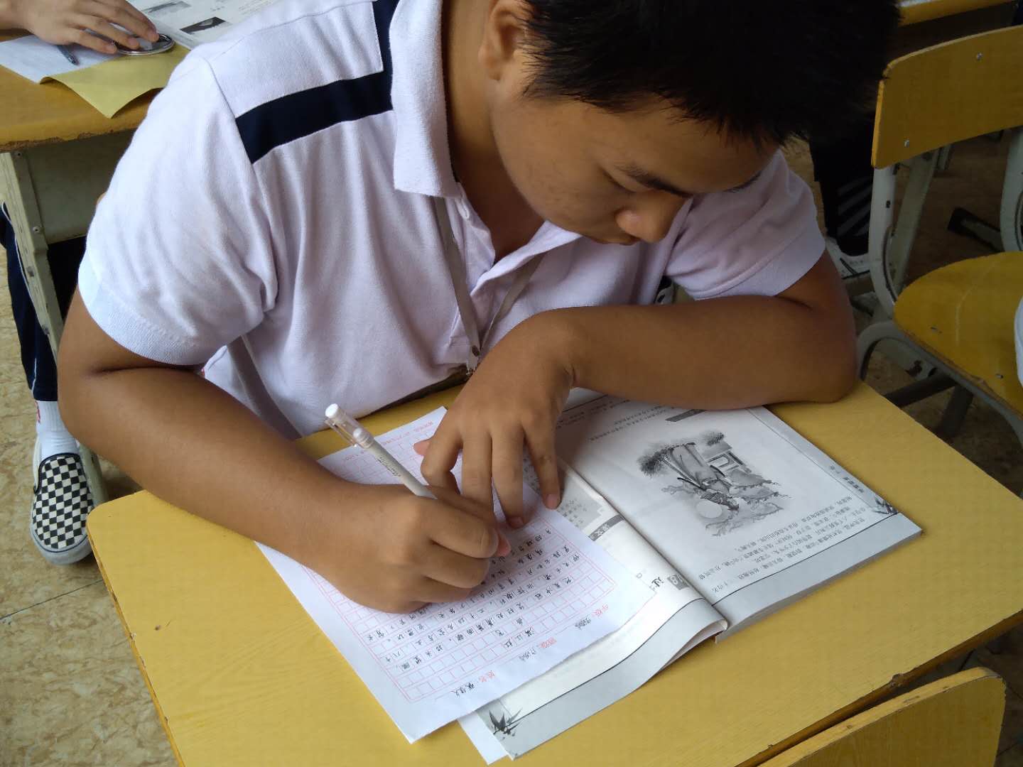 随后,同学们进入比赛环节,一笔一划用心书写每一个汉字。每首小诗,每段文字,都展示出书写者的情怀。