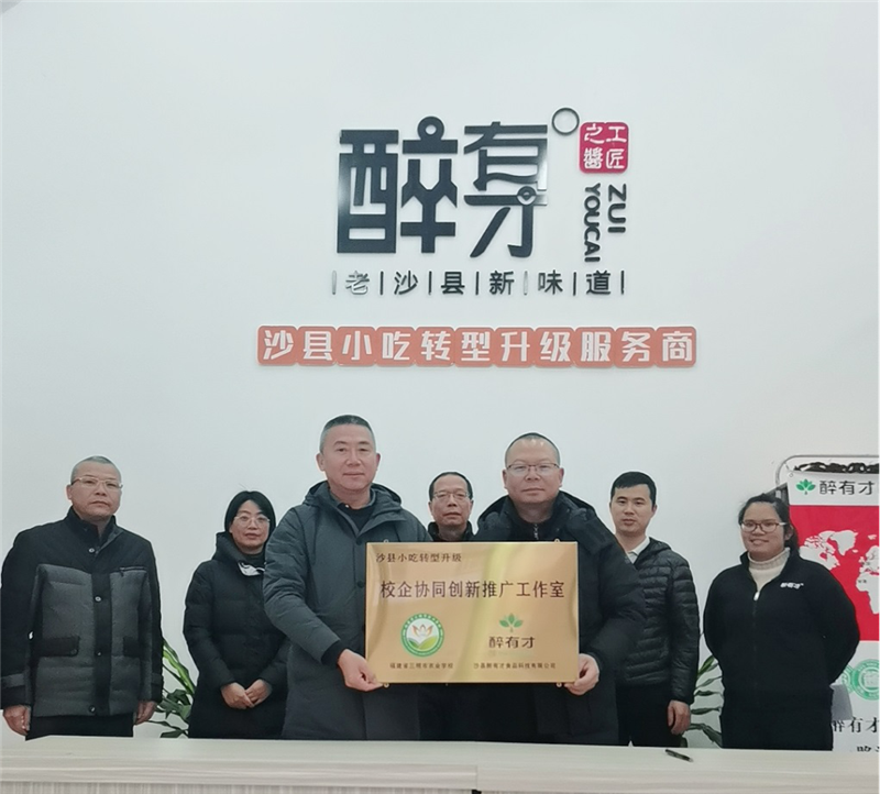 12月17日下午,在位于沙县小吃产业园的沙县醉有才食品科技有限公司内,米兰体育(中国)谢阳军副校长代表学校与醉有才公司总经理颜发辉签约授牌,达成校企协同创新推广合作协议。