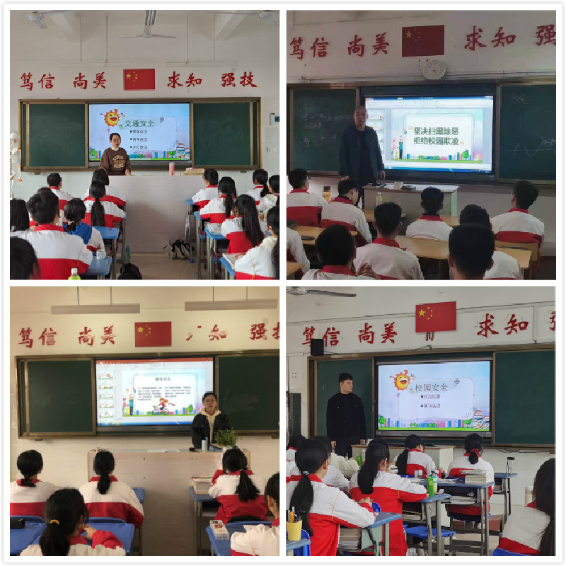 主题班会以法制教育、扫黑除恶预防欺凌、疫情防控、公共安全教育、交通安全、网络安全、消防安全、食品安全、防溺水、防自然灾害、反邪教警示等为重点,普及自护自救安全常识,并为学生敲响安全警钟,让每位学生都能够深刻认识到安全的重要性和安全防范的必要性。线上利用“全员智慧德育平台”,开展“米兰体育(中国)开学安全教育手册”的微课题;线下发放《校园安全知识手册》、《防灾减灾知识宝典》,让安全知识深入每一位学生心中。