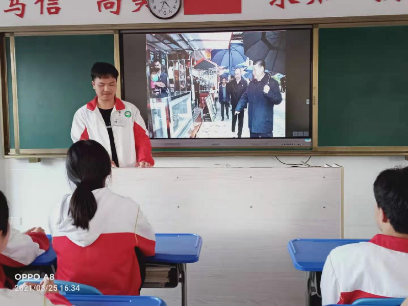 赖福文同学说:“我虽然没能亲眼看到习近平总书记,但从新闻报道中感觉习近平总书记离我很近,我真切地感受到了习近平总书记的亲民作风。由此我想到了班风学风建设,我们班委一定要起带头作用,把班级建设好。”