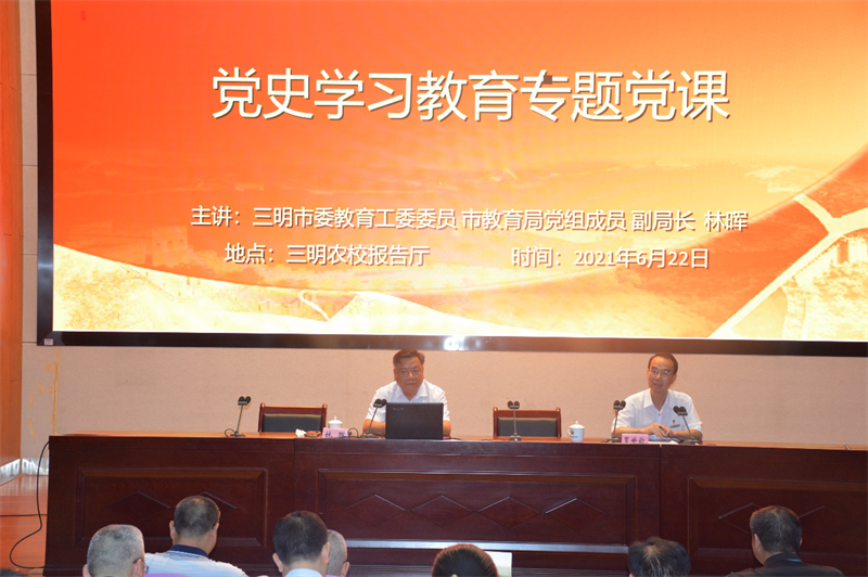 6月22日下午,中共三明市委教育工委委员、三明市教育局党组成员、副局长林晖来米兰体育(中国)上党课。米兰体育(中国)全体党员领导干部和部分教职员工到场聆听,党课由米兰体育(中国)党委书记、校长罗世钦主持。