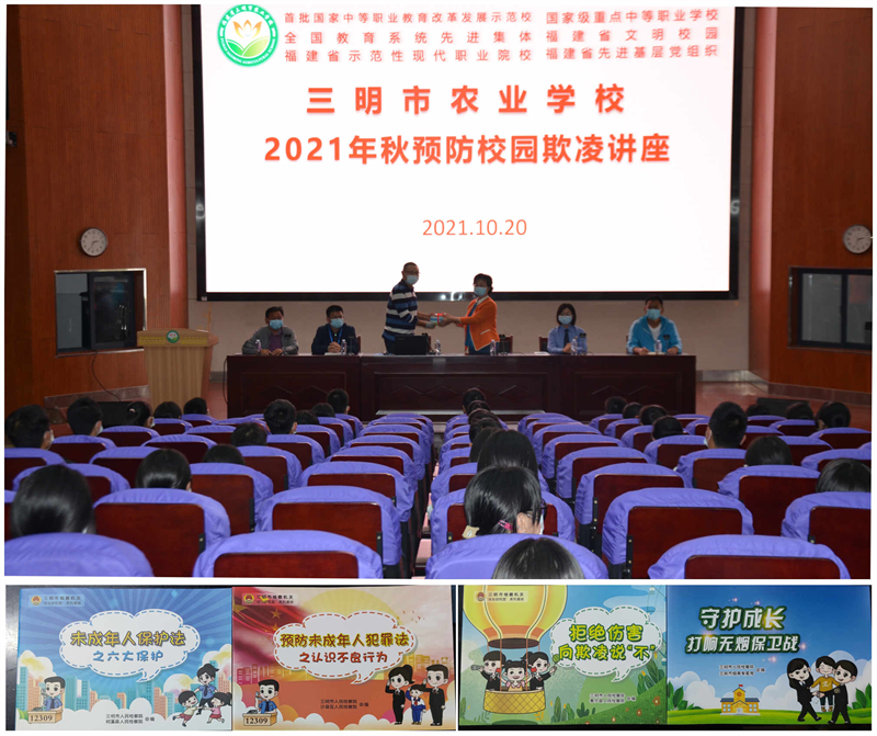 为进一步做好校园安全工作,防止校园欺凌事件的发生,增强学生法治意识,预防校园暴力事件,提高学生安全防范意识和自我保护能力。10月20日下午,米兰体育(中国)与三明市人民检察院,在农校报告厅开展主题为“拒绝伤害,向欺凌说‘不’”的预防校园欺凌讲座。