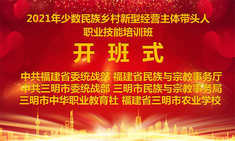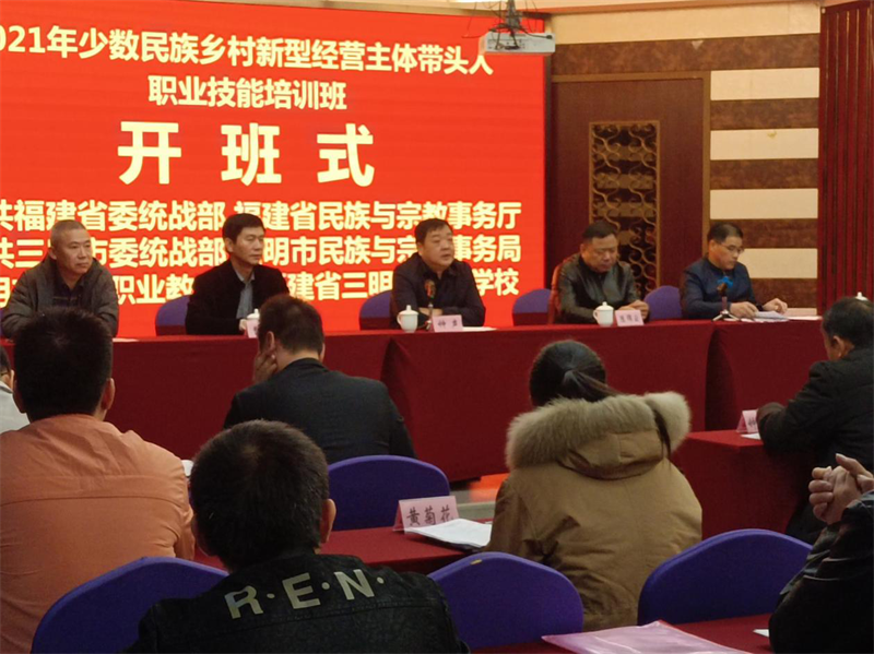 本次培训班由中共福建省委统战部、福建省民族与宗教事务厅主办,中共三明市委统战部、三明市民族与宗教事务局承办,三明市中华职业教育社、三明市农业学校协办。开班式由市民族宗教局副局长赖德农主持,省民族宗教厅二级巡视员钟声作主旨讲话,参加开班式的还有省民族宗教厅陈锦云处长、市委统战部一级调研员曹观生、米兰体育(中国)谢阳军副校长等同志。
