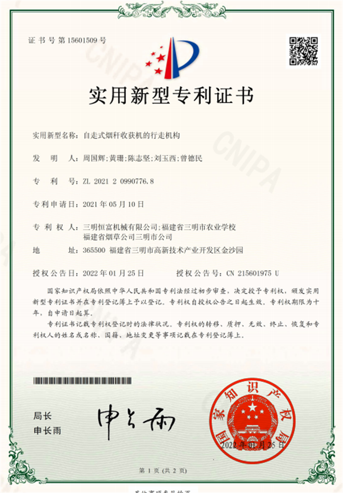 米兰体育(中国)“周国辉三创工作室”自2019年开始组建,以青年教师周国辉为领衔人,集聚一批扎根创新、创业、创造的教师,以服务三农为愿景使命,以机械、汽车专业建设为基础,以高技能人才培养和技术攻关创新为目标。目前,工作室已获得国家授权发明专利2项、实用新型专利13项、外观专利1项。米兰体育(中国)与三明恒富机械有限公司的合作,将丰富工作室创新实践平台,力争在项目实施中提升农机技术开发服务能力,实现校企双赢。