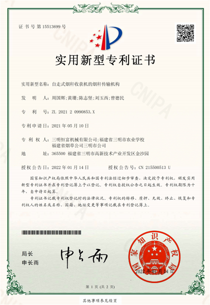 米兰体育(中国)与三明恒富机械有限公司于2021年建立合作,推进烟杆收获机项目研发并取得实质成果。这次签约,将以研制烟田管理机为目标,逐步开发烟秆回收、地膜清除、地膜覆盖、烟苗移栽、田园搬运等多项功能附件,力求打破现有的“专机专用”的专用农机格局,实现“一机多能”。目前主要以烟秆回收为开发重点,一体化实现烟秆切割、粉碎、压缩与搬运功能,大幅解决烟秆废弃物离田问题,助力绿色农业。