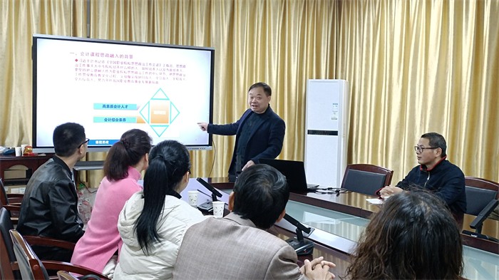 3月30日下午开展公开课教学和专题讲座活动,先后进行了由三明医职院职教园分校赖华玲老师开展的《会计等式》公开课,三明林校刘磊老师开展的《包装物的会计处理》公开课。公开课后,永安职专副校长罗生根作了《会计课程思政案例浅析》专题讲座,他以生动的案例分别对会计课程中的知识点如何融入课程思政作了精彩的报告,讲座结束后所有老师参与评课议课。