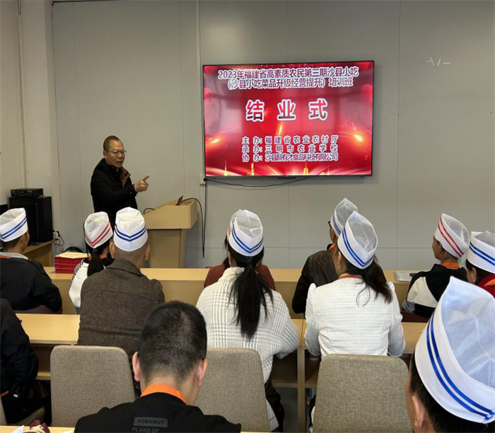 11月16日,2023年高素质农民第三期沙县小吃省级示范培训班结业。醉有才草本工酱创始人颜发辉参加结业式,并向本期5名优秀学员颁发奖品。