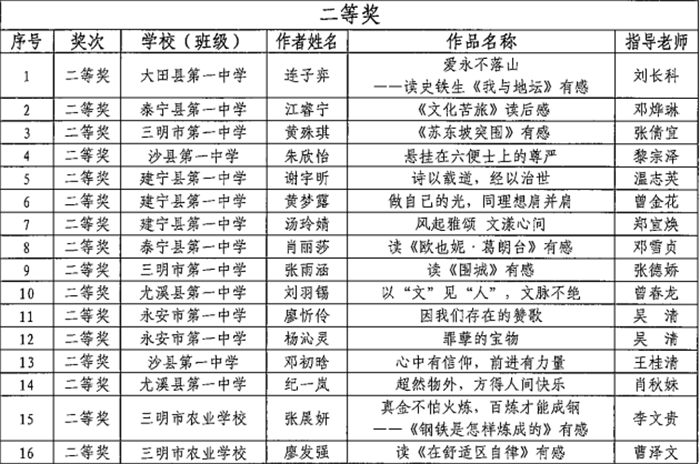 近日,三明市教育局公布2023年三明市师生“暑期读一本好书”征文评选结果,由我校语文教研组沈传文老师负责审阅选送的两篇学生作品获高中组二等奖。获奖人为张晨妍(2021建筑室内设计五年专班)和廖发强(2022数控五年专1班 ),指导老师分别为李文贵、曹泽文。