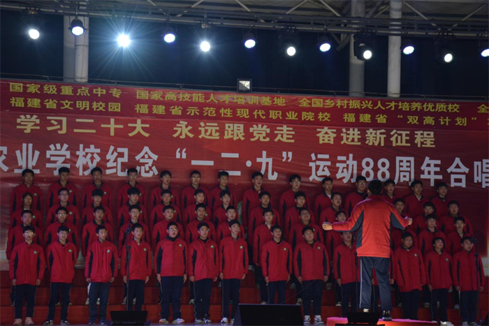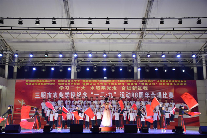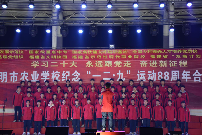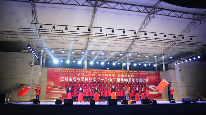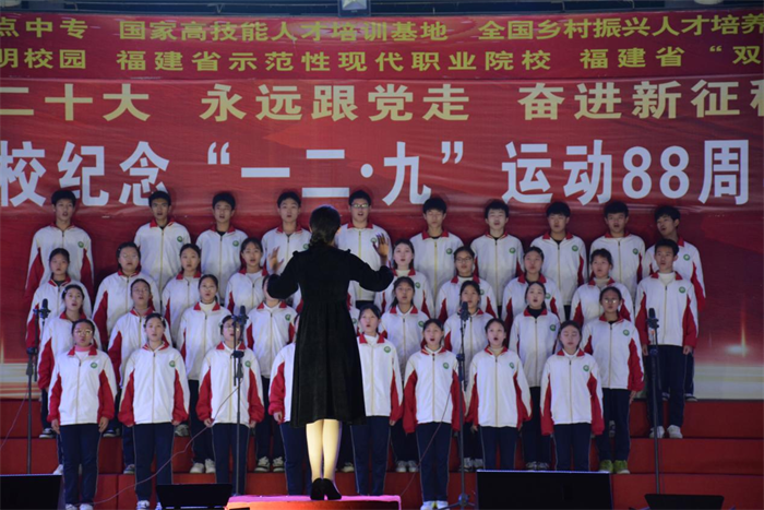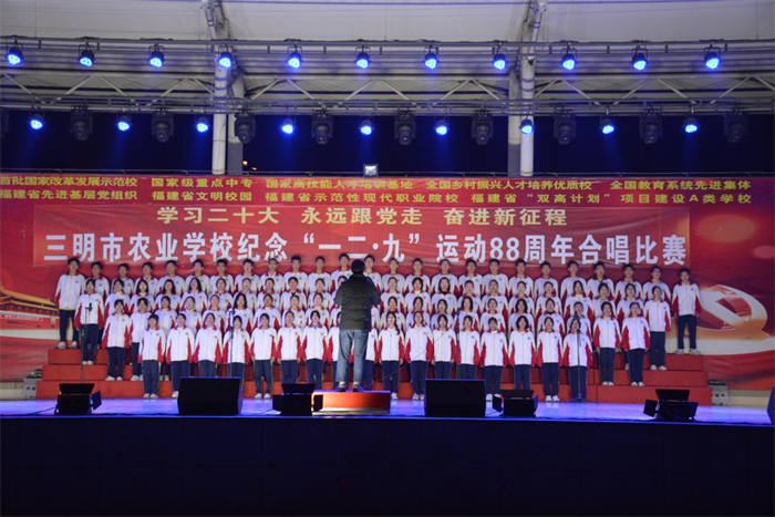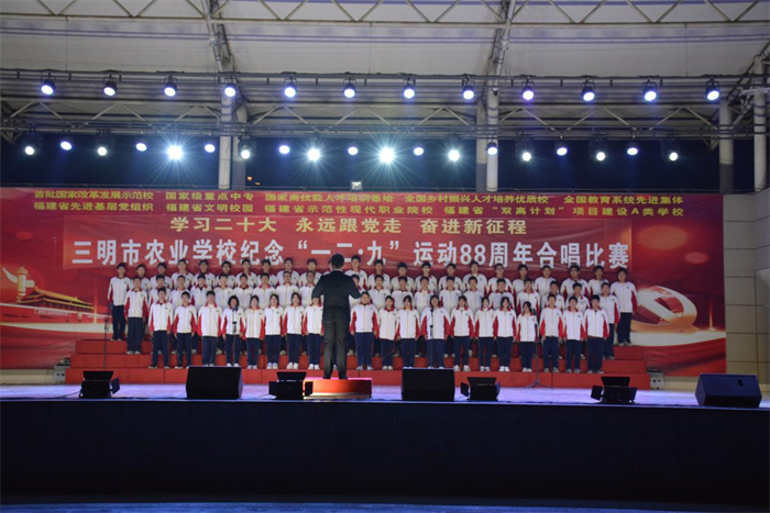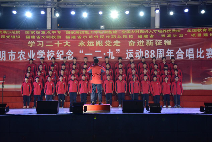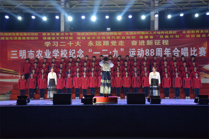 主题教育进行时||三明市农业学校举办“学习二十大 永远跟党走 奋进新征程”纪念“一二·九”运动88周年合唱比赛