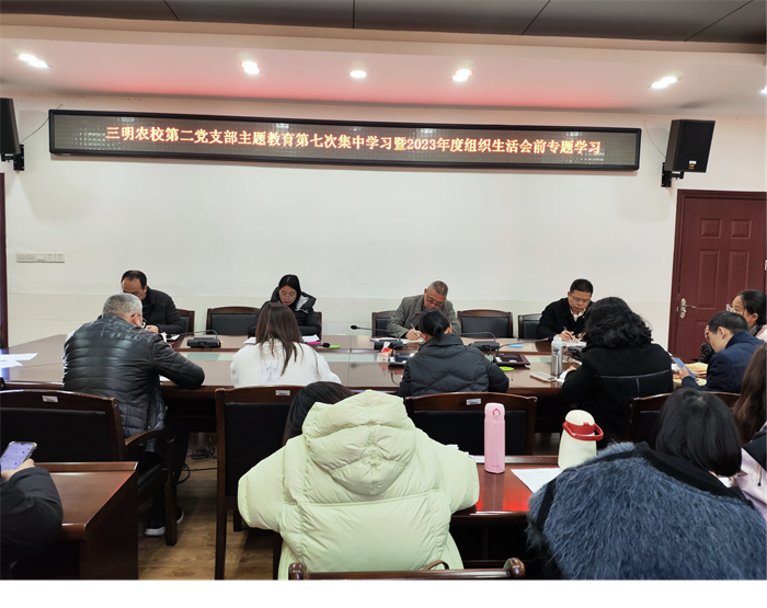 在主题教育理论学习的基础上,支部书记陈桂仙传达了中共三明市委教育工委转发的《中共三明市委组织部关于召开2023年度基层党组织专题组织生活会和开展民主评议党员的通知》精神,明晰了组织生活会工作流程。然后,她组织党员开展2023年度组织生活会前专题学习,先后学习了习近平总书记关于党的建设的重要思想、习近平总书记关于严肃党内政治生活的重要讲话和重要指示批示精神、习近平总书记关于以学铸魂、以学增智、以学正风、以学促干等重要论述、习近平总书记深入三明调研的重要讲话和重要指示批示精神、党章、新形势下党内政治生活若干准则等核心要义,进一步统一思想、深化认识。