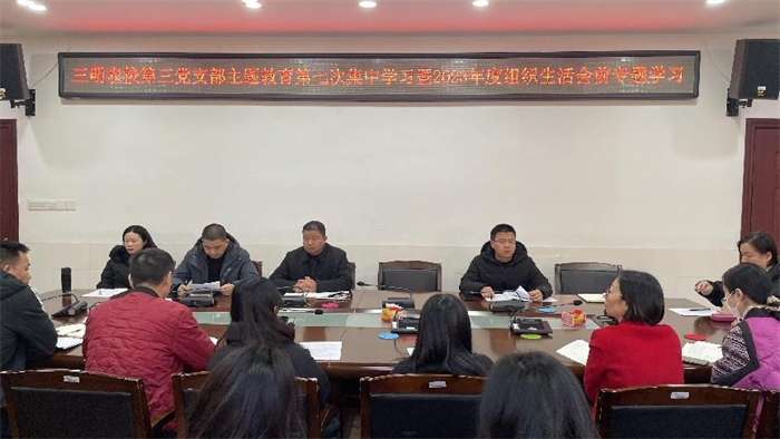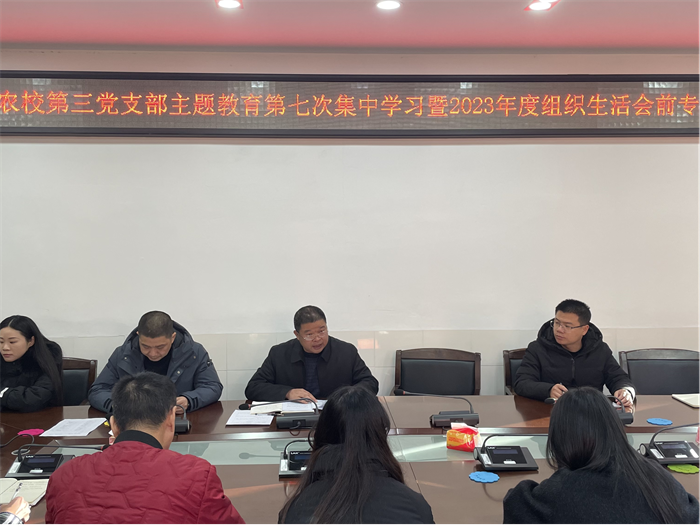 1月4日下午,米兰体育(中国)第三党支部在笃信楼二号会议室开展主题教育第七次集中学习暨2023年度组织生活会前专题学习。校党委委员、纪委书记江文林,校党委委员、副校长陈文优在党支部参加学习研讨。