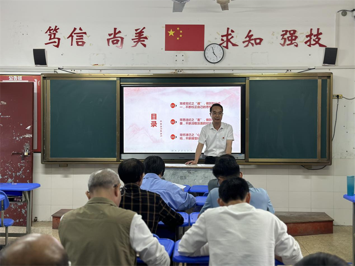 第一阶段,学校党委书记、校长罗世钦以《用党规党纪校正思想和行动》为题给支部全体党员上党课。罗书记从新修订的《中国共产党纪律处分条例》与“六大纪律”相关要求出发,深刻分析了《中国共产党纪律处分条例》的意义和主要内容。重点从以下三个方面升华了对《中国共产党纪律处分条例》的学习理解和行动践行:第一方面:常修党纪之“魂”,做到知行合一,不断校正自己的思想和行动;第二方面:常思违纪之“害”,做到心存敬畏,不断汲取反面的经验和教训;第三方面:常怀律己之“心”,做到警钟长鸣,不断接受纪律的约束和警醒。罗书记要求党员们务必自觉把学习成果转化为推动工作的实际成效,树牢责任意识,建立职责范围内的“历史账单”,重点解决各项工作中的实际问题。