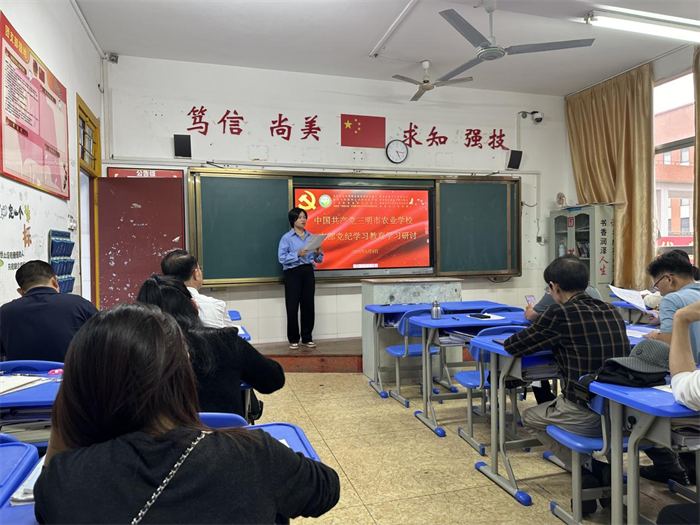 第二阶段,支部宣传委员段磊带领党员们一起学习《中国共产党纪律处分条例》第七章至第十一章,林莉萍、李建洲两位党员分别从班主任、教学工作两方面分享学习心得,其他党员结合自身岗位交流了学习体会。