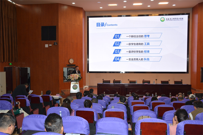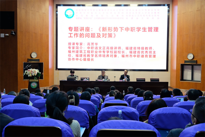 研修过程中,中职语文正高级讲师、福建省特级教师,福州建筑工程职业中专学校副校长,福建省优秀班主任、福建省教学名师培养对象,福州市中职德育管理协作中心组组长高芳华为研修学员们带来了题为《新形势下中职学生管理工作的问题及对策》的讲座。