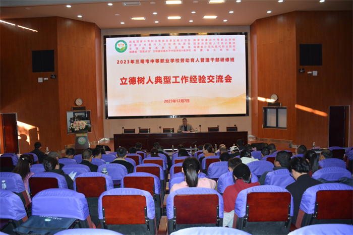 为持续推进主题教育走深走实,深入学习贯彻习近平总书记关于劳动教育的重要讲话精神和中央有关决策部署,总结推广全市中等职业学校落实“五育并举”“三全育人”、立德树人的典型经验,12月6日—8日,2023年三明市中等职业学校劳动育人管理干部研修班在三明市农业学校举办。各市、县(区)教育局分管领导、各中等职业学校德育分管领导、德育处负责人、年段长、班主任等共计70余人参加。为期三天的研修活动,结合专题讲座,跟岗实践,参观调研,交流研讨及晚自习、课间操、宿舍管理、主题班会现场观摩等多种形式,多层次、多角度为研修学员呈现了三明市农业学校劳动教育、“五育并举”的做法与特色,为研修学员们带来了深度启发。