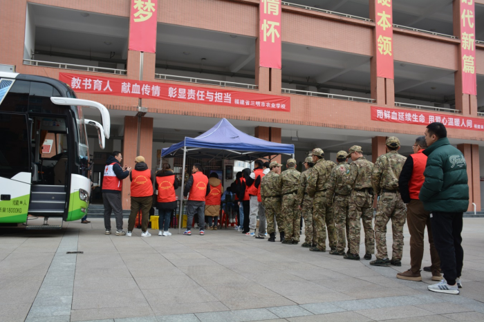 12月23日上午9点20分,沙县区卫健局、沙县区红十字会带着三明市中心血站流动采血车来到三明市农业学校校内中国梦广场,为无偿献血的三明市农业学校教师们集中采血。参加献血的教师,既有初次尝试的勇敢身影,怀着紧张与期待,也有多次献血的熟悉面孔,带着坚定与从容,更有不少教师在课间匆匆赶来,只为传递这一份爱心。