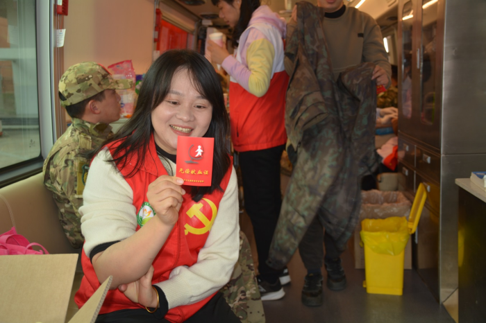 党员教师高秋香在采血车身献血时说:“无偿献血是一项非常有意义的社会公益活动,它不仅可以挽救他人的生命,还传递了人间的真情与爱心。作为一名党员教师,我想通过无偿献血行动来诠释社会的责任与价值,传承中华民族传统美德中的助人为乐精神。让我们共同努力,继续这一爱的传递,为更多需要帮助的人提供生命的火种。”