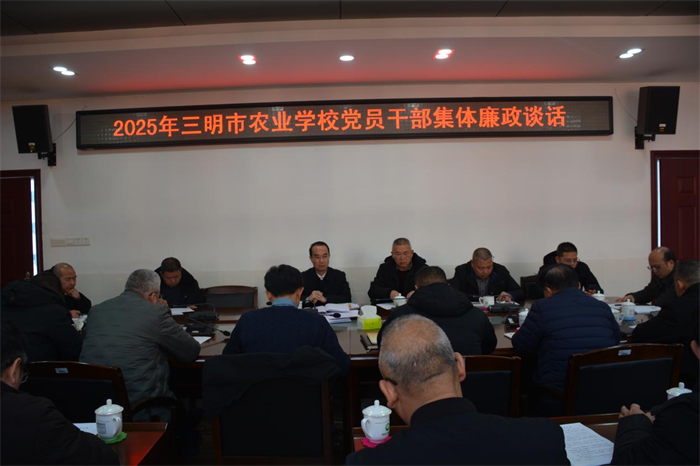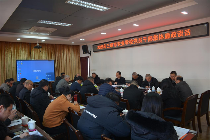 2025年1月10日,三明市农业学校在笃信楼第二会议室开展了春节前党员领导干部集体廉政谈话。此次集体廉政谈话由校党委书记、校长罗世钦主持,学校党政领导和全体中层干部参加。谈话围绕“四讲四心”展开,旨在进一步强化廉政意识,筑牢廉洁防线,确保全体党员干部以清正廉洁的姿态迎接新的一年。