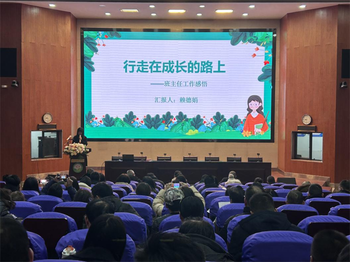 首先是班主任工作经验分享与交流环节。学校德育工作能取得今天的成绩,离不开一群默默耕耘的班主任老师,赖德娟、林昌龙和狄晓光三位老师作为优秀班主任代表分别围绕“行走在成长的路上”、“新手班主任的成长感悟”、“班主任能力比赛解析”三个主题,分享他们在班级教育管理和班主任能力比赛的经验,介绍自身的成长经历,提出了诸多富有洞察力与实践价值的建议与策略,为班主任能力成长提供了宝贵经验。