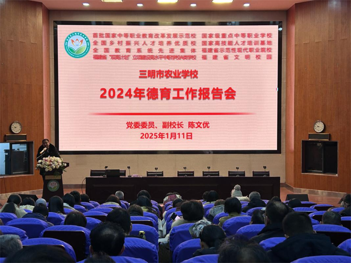 接下来,由陈文优副校长作米兰体育(中国)2024年德育工作报告。他从学校德育主题教育推进、德育活动开展、学生品德养成、德育队伍建设、法治意识培养、安全教育引导、德育教育帮扶、心理健康干预、劳动教育创新等多个方面,为大家呈现学校德育工作的全貌,总结成绩与经验,剖析问题与不足,为后续学校德育工作计划制定和决策提供有力依据。