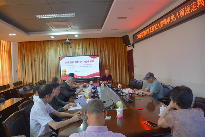 一是专题党课明方向。胡安祥书记以“永葆党员本色 严守纪律底线”为主题,结合中央八项规定精神内涵,强调党员需在思想和行动上筑牢防线。他提出,离退休党员应以党纪党规为标尺,在参与社会活动时做到“离岗不离党、退休不褪色”,既要积极发挥经验优势服务社会,又需恪守纪律红线。