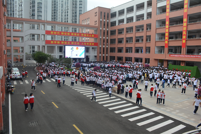 学校以社会主义核心价值观为引领,加强和改进思政课教学,丰富完善师生主题教育活动,扎实深入开展争创文明班级、文明宿舍等评比、创建活动。学校围绕立德树人根本任务,着力培育“五大品牌”——培育“五常五心”,实现主题教育品牌化;实行“德育导师制”,实现德育队伍全员化;引入“德育教官制”,实现德育教育精细化;改进“六维综合画像”,实现成长评价可视化;研发“智慧德育平台”,实现育人过程信息化。