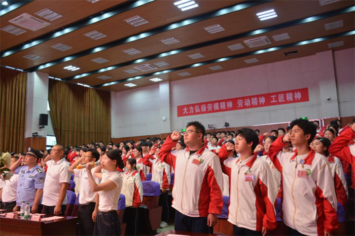 随后,22电气化自动化五年专班黄浩楠同学作为学生代表上台发言。他深情回顾十八载成长历程,感悟青少年的责任与担当。他说,十八岁是青春最美的礼赞,中职学子应做“眼中有光”的追梦者,将个人理想融入民族复兴;做“脚下有路”的实干家,以工匠精神践行技能报国;做“肩上有责”的传承者,以青春“小我”书写强国“大我”,不负青春使命。