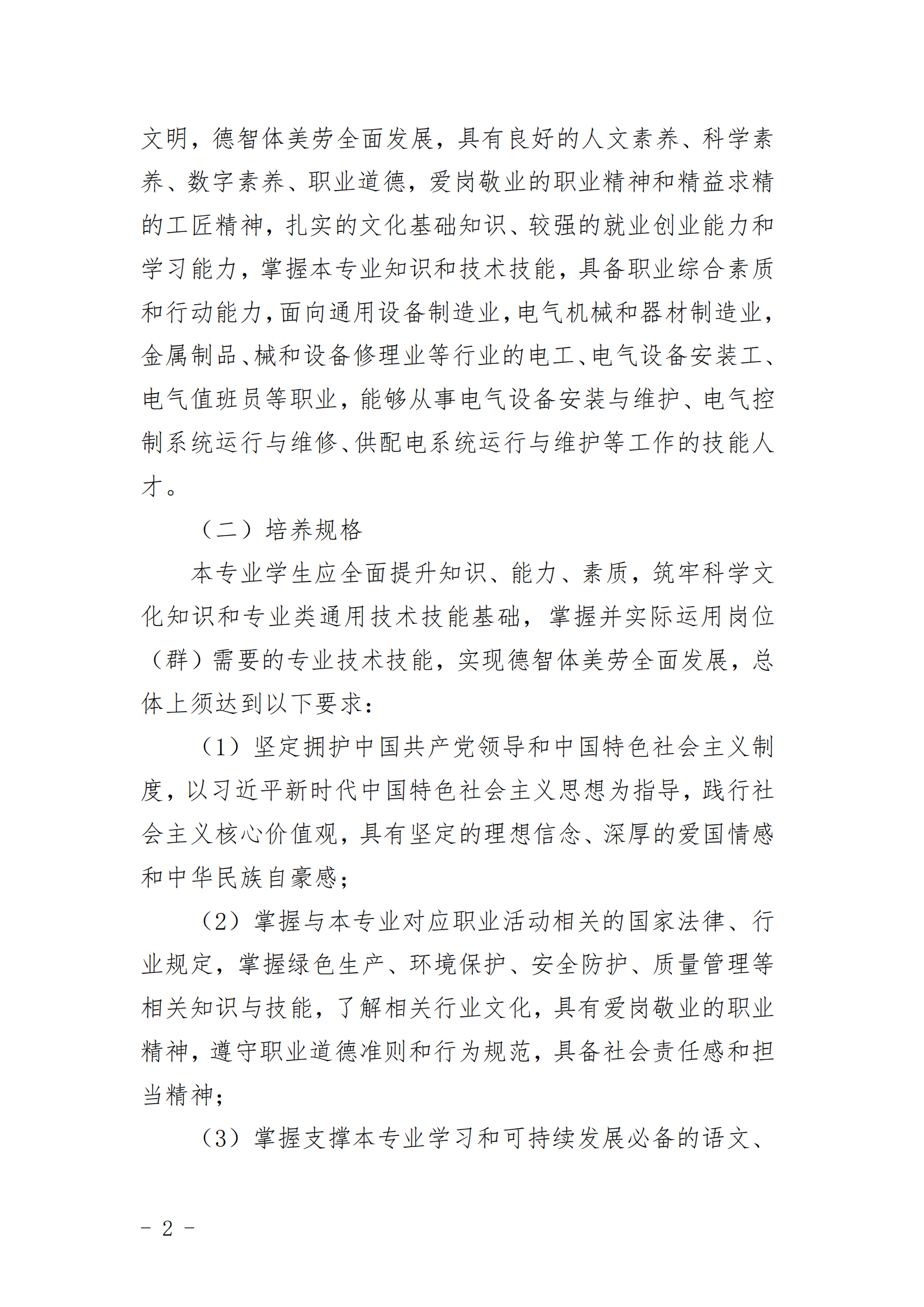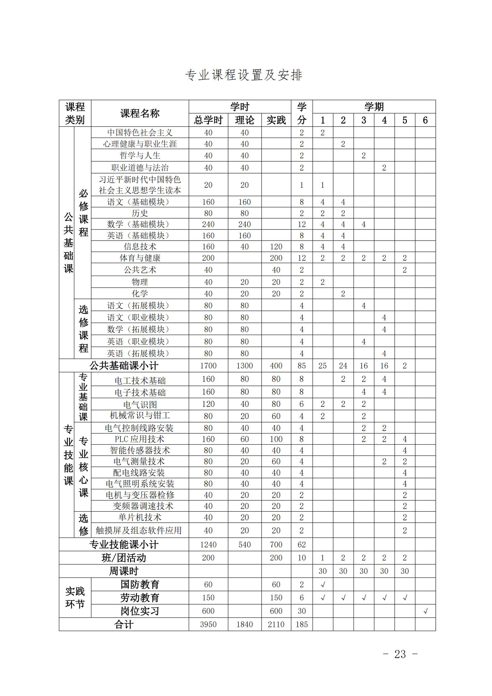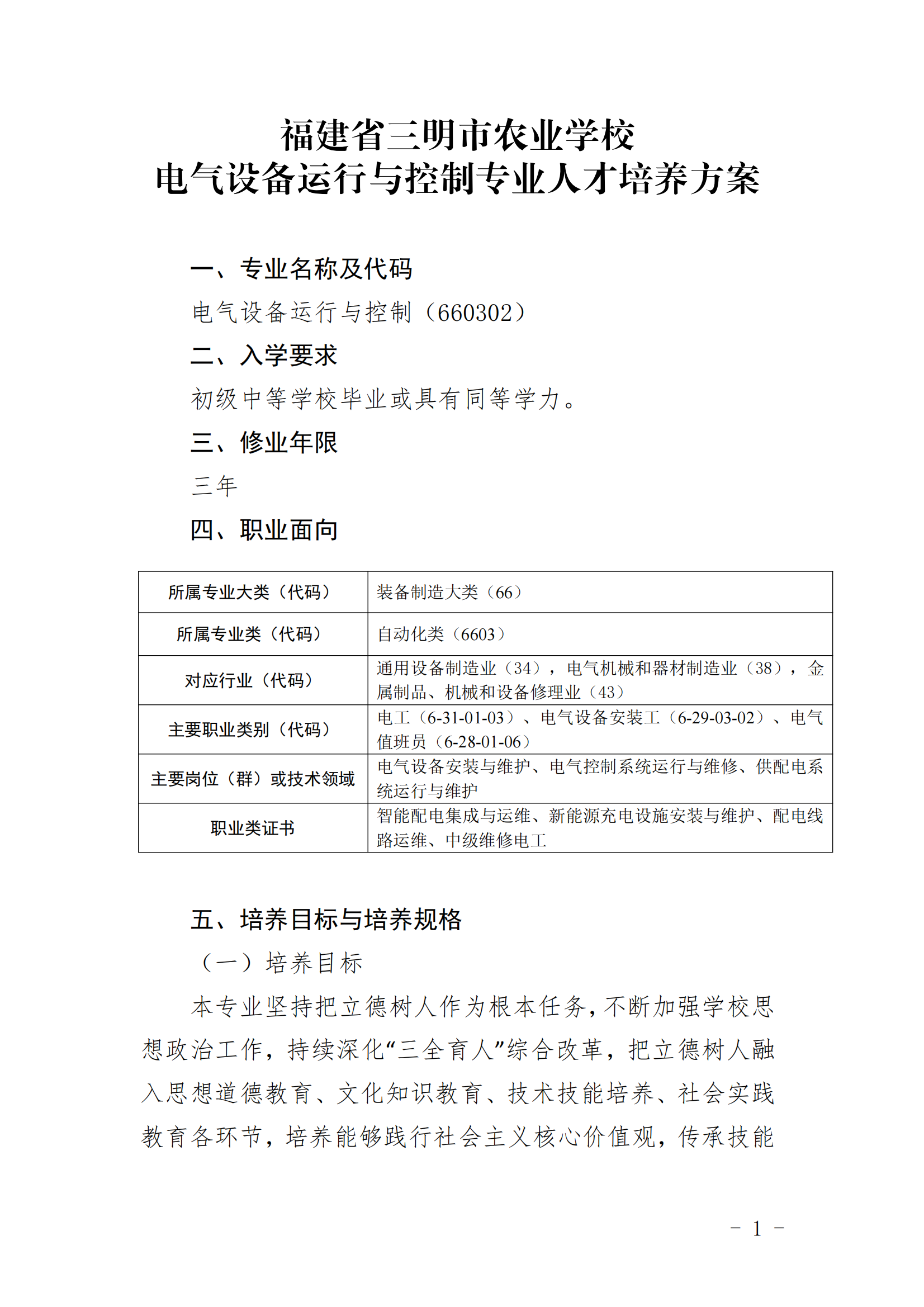 米兰体育app官网电气设备运行与控制专业人才培养方案