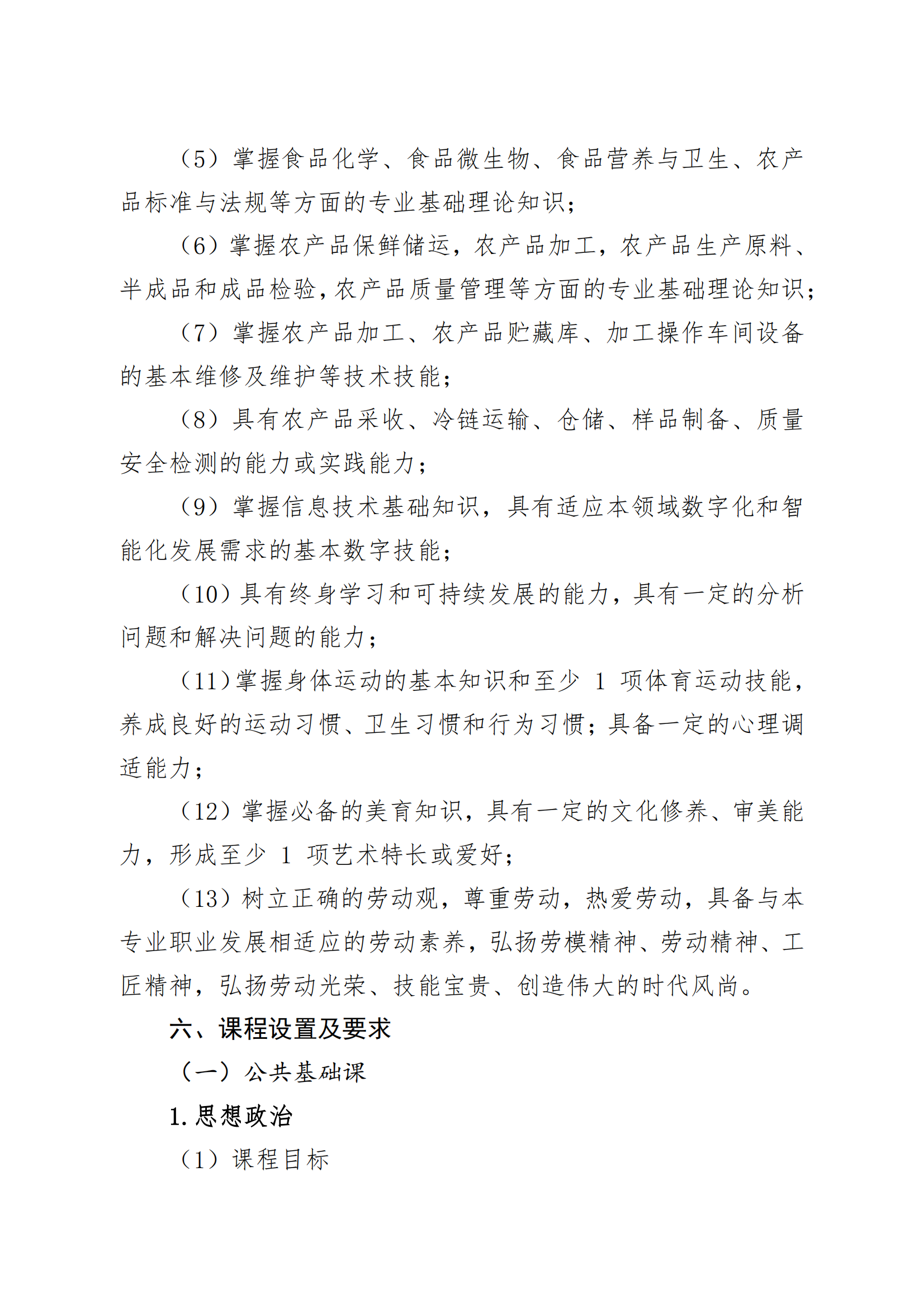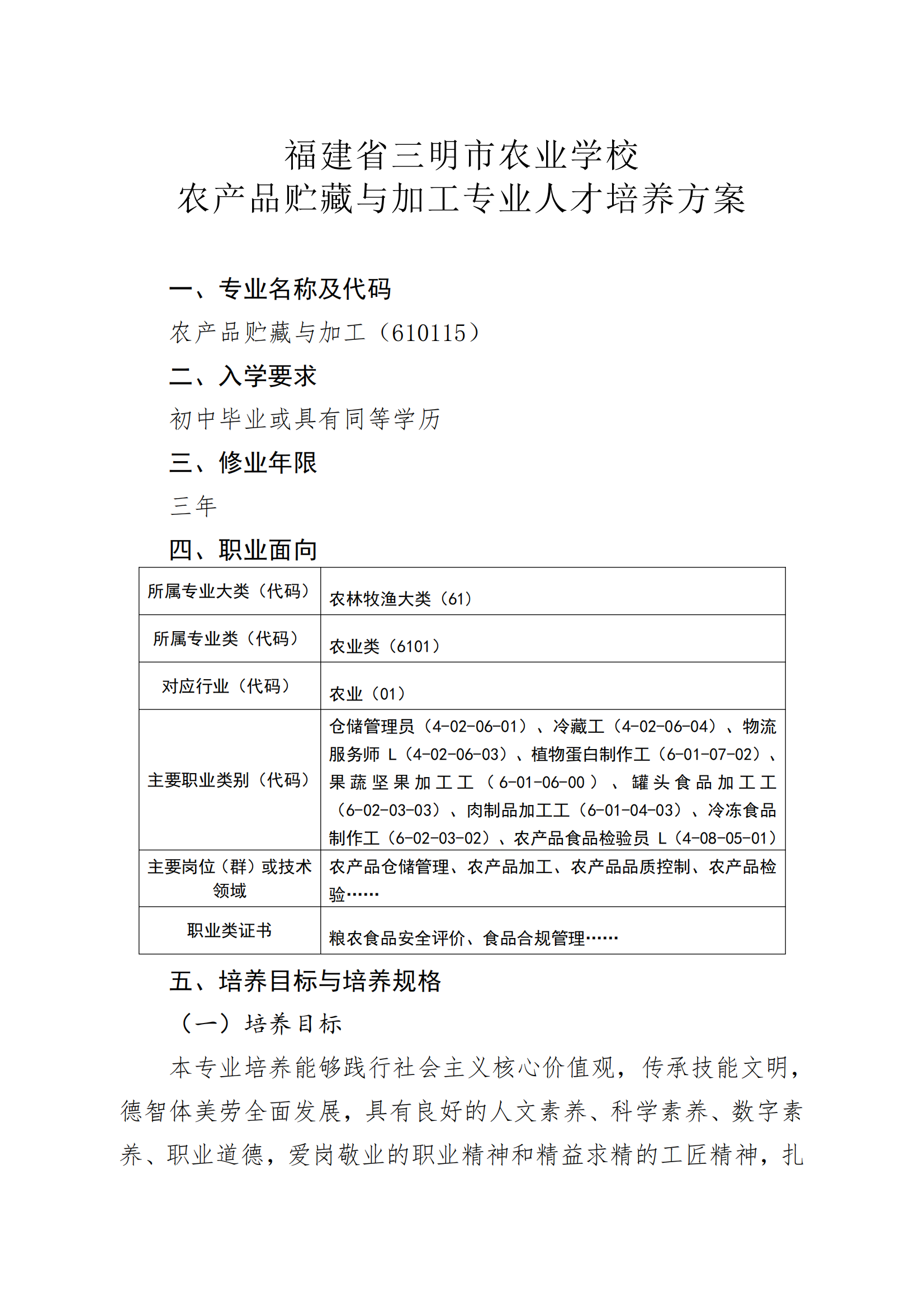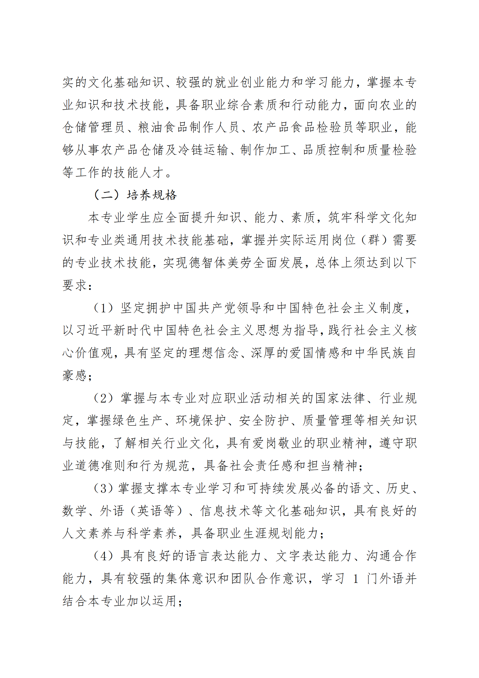米兰体育app官网农产品贮藏与加工专业人才培养方案
